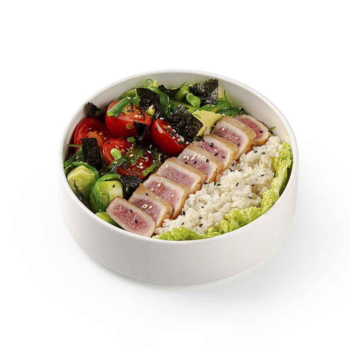 С тунцомТунец, свежие овощи, маринованная чука, цитрусовая заправка